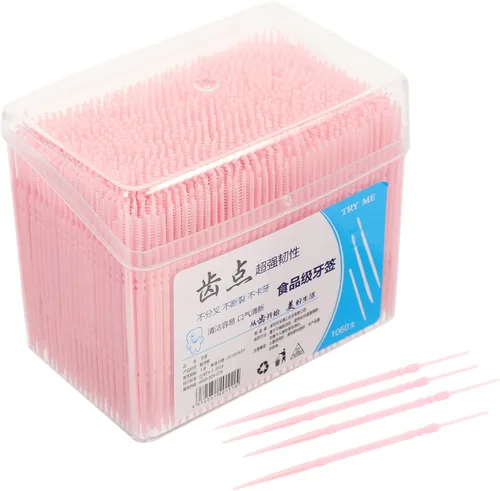 Tamaño portátil y fácil de llevar a cabo Elimina la placa donde tu cepillo no puede alcanzar Suavemente, se limpia fácilmente entre los dientes y elimina de forma segura los restos de Palillo de dientes de doble punta: 1000 palillos de dientes isontables, satisface tus diferentes necesidades Hecho de plástico PP de grado alimenticio, material amigable