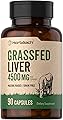 Horbäach Hígado de res alimentado con pasto | 4500 mg | 90 cápsulas | Desecado, criado en pasto, sin granos, suplemento sin OMG