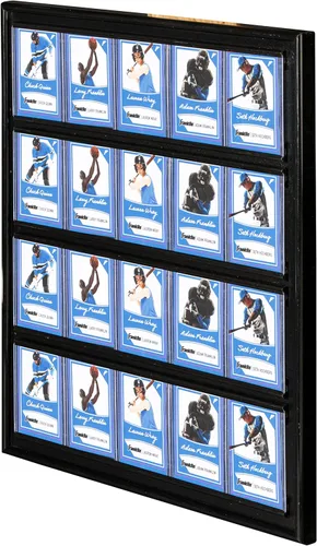 Marco de exhibición: ¡Ponga su colección de béisbol, deportes, comercio y otras tarjetas en exhibición completa con este marco de exhibición de tarjetas fácil de montar! Se adapta a la mayoría de las tarjetas: el marco está diseñado para ser compatible con cargadores superiores de 4 "x 3" para que puedas mostrar cualquier variedad de colección de tarjetas con facilidad Montaje en pared: esta vitrina viene con soportes de pared preinstalados para colgar fácilmente su colección de tarjetas en cualquier pared de la casa. SISTEMA DE PISTA: El sistema de pista fácil de usar le permite deslizar tarjetas dentro o fuera para cambiar la pantalla a medida que agrega al marco. DIMENSIONES: Este marco de exhibición de tarjetas de 16" 19" pulgadas puede contener hasta (20) tarjetas a la vez para que pueda mostrar y proteger su colección de forma segura. INCLUYE: ¡El marco incluye 20 cargadores superiores transparentes para mostrar su valiosa colección!