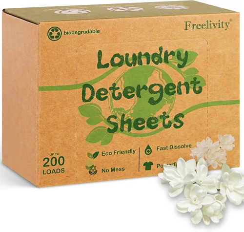 Freelivity Hojas de detergente para ropa, 200 hojas de aroma de lino fresco, ecológicas, hipoalergénicas, sin plástico, sin líquido, suministros de