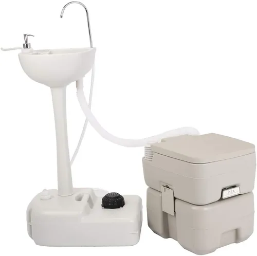 Fregadero portátil de campamento, estación de higiene de viaje e inodoro combinado Estación de lavado de manos autónoma e inodoro para campamento