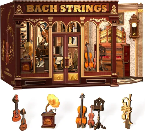 Fsolis Kit de rincón de libros, kit de casa de muñecas en miniatura para adultos, estantería, rompecabezas 3D, libro de música, casa pequeña,