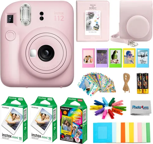 El paquete incluye: cámara de película instantánea Fujifilm Instax Mini 12, película instantánea Fujifilm Instax Mini Rainbow, 10 fotos/paquete (arcoíris), Fujifilm Instax Mini Twin Pack Película instantánea (16437396), álbum de fotos, estuche de cámara, marcos de fotos colgantes, marcos de fotos de plástico, calcomanías, Expresa tu creatividad: con esta nueva cámara Fujifilm Instax Mini 12 + película + calcomanías. Esto incluye todo lo que necesitas para empezar a sacarlo de la caja, poniendo sonrisas en caras de todas las edades y un regalo perfecto para ti o un ser querido para todas las ocasiones. Modo selfie: utiliza el espejo selfie para alinear tu toma. El flash se ajusta automáticamente, incluso en el modo Close-Up! Obtén la cantidad justa de luz sin sobreexponer la foto. Cierre perfecto: gira la lente para encenderla, gira de nuevo para el modo de primer plano, ¡simple! Este modo es ideal para distancias de 30 a 19.7 in. Tamaño de tarjeta de crédito: la película única de tamaño de tarjeta de crédito es fácil de llevar en tu bolso o cartera y tiene bordes blancos para añadir estilo a tus imágenes.