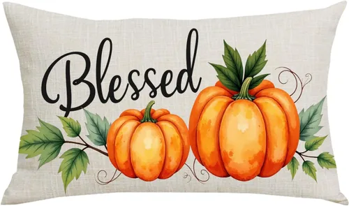 WENIANRU Pintura al óleo de tinta acuarela naranja calabazas bendecidas otoño Y'all otoño Día de Acción de Gracias para el hogar, sofá, silla, decoración de cama, funda de almohada lumbar de algodón y lino, funda de almohada decorativa rectangular de 12 x 20 pulgadas Tamaño: 12 x 20 pulgadas, 11.8 x 19.7 in. Puede haber un error de 0.4 a 0.8 pulgadas. Es solo una funda de almohada, el relleno de almohada no está incluido, la cremallera está oculta. Solo está impreso en un lado, si lo quieres impreso en ambos lados, envíanos un correo electrónico. Puede decorar tu hogar, sala de estar, dormitorio, sofá, silla, cama, automóvil, etc.