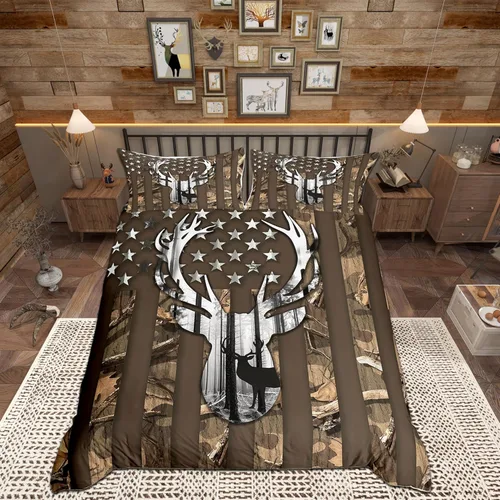 Pregunta sugerida sobre Funda de edredón con diseño de bandera estadounidense de camuflaje, tamaño individual, silueta de ciervo y árboles marrones, edredón ¿Este producto sí me sirve para lo que necesito?