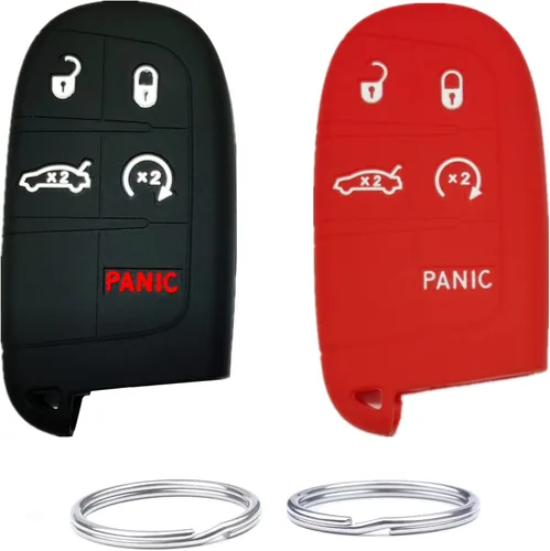 El paquete incluye: 1 funda negra para llave y 1 funda roja y 2 llaveros de acero inoxidable 304. Precaución: Dado que nuestras fundas de silicona de goma son muy ajustadas a las llaves de su automóvil, puede ser un poco difícil de instalar. Puedes darle un poco de lubricación, como crema de manos. Vehículos compatibles para (solo referencia): Dodge Chrysler 200 Chrysler 300 Challenger Charger Dart Durango Journey Viper Fiat 500 500L 500X Jeep Cherokee Compass Grand Cherokee Renegade Ram 1500 Ram 2500 Ram 3500 Dakota. Número de pieza OEM de clave: M3N-40821300 2. Ajuste perfecto y excelente función, la señal clave no se ve afectada. Pequeño seguro para un llavero muy caro. Excelente sensación táctil y elegante, los botones siguen teniendo una gran sensación y funcionan igual. También pueden añadir un poco de protección en caso de caída, también puede evitar la separación accidental de la llave de la llave del control remoto y proteger el deslizador de bloqueo. Material de goma de alta calidad de grado alimenticio sin olor peculiar. Diseño impresionado, hace que la llave de tu automóvil sea fácil de encontrar y se vea genial, fácil de identificar tu llave, nunca se mezcla con otros. Protege tu costoso llavero de daños.