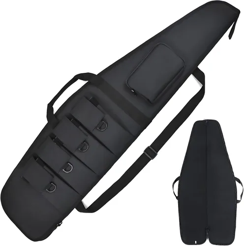 【Medición】: Hay tres tamaños de estuche suave para rifle. Disponible en longitudes de 44 pulgadas, 48 pulgadas y 52 pulgadas. Exterior 47 x 11 pulgadas (Interior 44 x 10 pulgadas), Exterior 51 x 11 pulgadas (Interior 48 x 10 pulgadas), Exterior 55 x 11 pulgadas (Interior 52 x 10 pulgadas). Estos tamaños de estuche para armas largas son adecuados para la mayoría de rifles, armas de caza y escopetas. 【Mejor protección】: El acolchado tiene aproximadamente 3/4" de grosor y la densidad justa para absorber los golpes y golpeteos que tu rifle podría encontrar durante sus viajes. La suave bolsa para rifle está equipada con una correa de hombro con una almohadilla para el hombro, que puede reducir la fricción y el deslizamiento de la cincha directamente con tu hombro. Puedes colgar la bolsa en tu hombro para facilitar el viaje/caza durante mucho tiempo. 【Características】: las cremalleras tienen bucles para abrir/cerrar y cuando se juntan al cerrar, hay un bucle en la cremallera para que se pueda insertar un candado para asegurar el arma. Bolsillos para accesorios con cremallera y 4 bolsas cerrables para cargadores. Visores de rifle para disparos de largo alcance con bolsillos, podemos instalar algunas cosas pequeñas, como iPhone, balas, guantes, marcadores, brújula, etc. Duradera: la bolsa para rifle está hecha de material 600D duradero de alta calidad. El relleno es denso y la amortiguación de espuma proporciona una muy buena protección contra impactos. Ambos utilizan hebillas SBS de material virgen audaz y cremalleras dobles pesadas. Nota: el tamaño exterior no es el mismo que el tamaño interior, consulta cuidadosamente al realizar un pedido. Si no estás satisfecho con nuestro producto, ponte en contacto con nosotros primero, te proporcionaremos una solución satisfactoria.