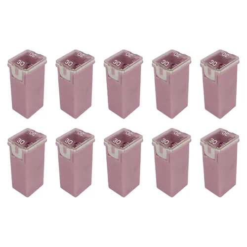 30 Amp - Paquete de 10 -- Estuche J de perfil estándar Fusible alto La cubierta semitransparente hace que sea fácil ver cuando tu fusible se ha soplado. Comúnmente utilizado en automóviles, camiones, SUV, vehículos todoterreno, autobuses y embarcaciones, protege tu vehículo y dispositivos eléctricos de un cortocircuito o sobrecarga. Para uso en Acura, Audi, BMW, Buick, Cadillac, Chevy, Chrysler, Dodge, Ford, GMC, Honda, Hyundai, Jeep, Kia, Lexus, Mercedes, Nissan, Ram, Subaru, Suzuki, Toyota, Volkswagen, Volvo y mucho más Reemplaza las funciones de control de freno y potencia de remolque y remolque entre varios sistemas automotrices, perfecto para reemplazar fusibles soplados relacionados con remolques en camiones. Puede que no se ajusten a enchufes de fusibles J-Case que tienen fusibles de perfil bajo, pero también tenemos los disponibles para su compra