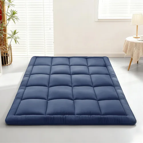 Futón japonés de material cómodo y respetuoso con la piel: nuestra colchoneta de dormir está hecha de tela de microfibra de primera calidad, estos colchones para dormir ofrecen una suavidad y comodidad excepcionales. Es altamente transpirable y suave con la piel, asegurando una experiencia agradable. Disponible en tres tamaños versátiles: individual (80 pulgadas de largo x 39 pulgadas de ancho), matrimonial (80 pulgadas de largo x 54 pulgadas de ancho) y Queen (80 pulgadas de largo x 60 pulgadas de ancho) para adaptarse perfectamente a tus necesidades. Colchón Tatami mejorado para dormir: las capas superior e inferior del colchón de futón japonés son de poliéster de alta calidad acolchado para comodidad de felpa, mientras que la capa media es una espuma base de soporte flexible que dispersa eficazmente la presión corporal. Esta construcción proporciona una superficie cómoda y de apoyo para dormir o descansar. Práctico diseño de doble cara del futón de piso: disfruta del doble de valor con nuestros colchones de futón de doble cara, que ofrecen dos superficies utilizables para prolongar su vida útil. Su naturaleza ligera hace que sea fácil de mover y reposicionar alrededor de tu casa o llevarlo contigo sobre la marcha para diversas actividades y aventuras. Colchón portátil multifuncional: este es el colchón multifuncional definitivo para el piso del futón. Utilízalo como futón de dormitorio, futón de sala de estar, tapete de tatami, colchón de piso o colchón de invitados. Es perfecto para acampar, dentro de una tienda de campaña o caravana, o incluso como una cama de almohada de suelo. Llévalo fácilmente en tu automóvil para mayor comodidad en cualquier lugar. Almacenamiento sin esfuerzo con la cuerda de amarre integrada del colchón: el almacenamiento es simple y ahorra espacio. El colchón plegable se enrolla de forma compacta y cuenta con una práctica cuerda de amarre integrada para asegurarlo perfectamente. Esto hace que sea increíblemente fácil de almacenar en un armario, debajo de una cama o en el maletero de un automóvil, manteniendo tu espacio organizado cuando no está en uso.