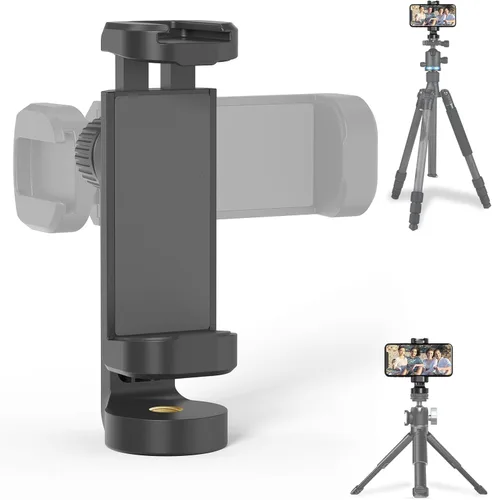 Diseño de zapata fría y tornillo de 1/4 de pulgada: equipado con un orificio universal de tornillo de 1/4 "en la parte inferior de la abrazadera, que se puede montar en cardanes, trípodes, palo selfie o cualquier dispositivo con tornillo estándar de 1/4", perfecto para grabación de video, tomar fotos, transmisión en vivo, reuniones en línea y más. También diseñado con una zapata fría, puede fijar micrófonos, luces de fotografía y otros equipos. Amplia compatibilidad: este soporte para trípode de teléfono tiene una apertura de 2.36-3.54 pulgadas de ancho, el ancho se puede ajustar libremente para adaptarse al dispositivo a través del botón de ajuste rápido en la parte posterior y el resorte elástico en la parte superior, muy cómodo de ajustar y usar, adecuado para todos los dispositivos de pantalla de 4 a 7 pulgadas. Compatible con casi todos los teléfonos celulares. Resistente y estable: este soporte de trípode para teléfono está hecho de ABS sólido y aleación de aluminio de alta calidad, que puede garantizar la máxima durabilidad y se puede utilizar durante mucho tiempo. Además, este soporte para trípode para teléfono tiene almohadillas de goma antideslizantes que se utilizan en ambos lados del clip para evitar que el dispositivo se caiga y se raye, para sujetar el dispositivo de forma segura sin preocupaciones. Soporte de trípode para teléfono celular: se puede girar 360° a voluntad, cambiando la pantalla horizontal o vertical a voluntad, ángulo de foto libre para satisfacer tus necesidades diarias de disparo. Diseñado con una perilla de bloqueo para hacer que el teléfono sea más seguro. Fácil de usar y compacto: con un botón de ajuste rápido y un resorte superior elástico, el soporte universal para teléfono para trípode se puede ajustar fácilmente para adaptarse al tamaño del teléfono, muy fácil de usar y conveniente. Además, este soporte de trípode para teléfono tiene un diseño compacto y elegante, sin estructuras complicadas, simple y portátil, puedes llevarlo a cualquier lugar cuando sea necesario.