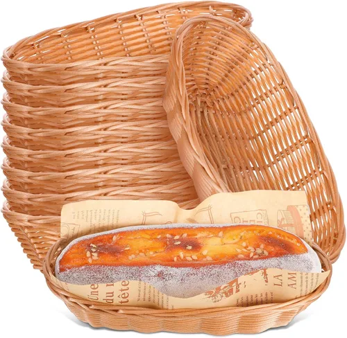- Material: plástico Diseño y funcionalidad principales: estas cestas de pan tejidas miden 8.85 x 4.13 x 2.16 pulgadas, ofreciendo una solución ligera pero resistente para servir y almacenar panes, frutas y aperitivos mientras mantienen la frescura de los alimentos a través de material de ratán de imitación transpirable Material y conservación de alimentos: hechas de ratán sintético transpirable, estas cestas tejidas permiten la circulación del aire para mantener el pan y las frutas frescas durante más tiempo, lo que las hace ideales para servir y almacenar varios alimentos sin atrapar la humedad Escenarios de uso versátiles: perfectas para cocinas domésticas, restaurantes, cafeterías o cualquier comedor, estas cestas de pan sirven como prácticos soportes para pan, frutas, dulces y verduras, mejorando la presentación de alimentos y la comodidad durante el servicio Cantidad conveniente y portabilidad: el paquete incluye 10 cestas tejidas ligeras que son fáciles de transportar y almacenar sin ocupar exceso de espacio, lo que las hace adecuadas tanto para el uso diario como para reuniones o eventos más grandes Opción de regalo cuidadosa: estas cestas de pan tejidas se pueden dar como prácticas y elegantes a familiares, amigos, vecinos y colegas, adecuadas para aquellos que aprecian los accesorios funcionales de cocina y comedor