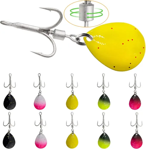 Alta calidad: no es fácil de romper, deformar o doblar, resistente al sol y al agua, larga vida útil, puede mantener su color y forma. Ganchos agudos: los ganchos son fuertes y duraderos, resistentes a la corrosión y no se oxidan fácilmente, muy afilados, penetración fuerte, fácil de agarrar firmemente los peces perforados rápidamente. Colores vivos: el anzuelo de pesca muestra un destello brillante en el agua, y la luz reflejada se convierte en el punto focal en el agua para atraer a los peces. Forma de gota de agua: menos resistencia que otras cuchillas, capaz de girar 360, moverse más rápido en el agua, bucear más profundo, mayor probabilidad de ganar el pez. Amplia gama de usos: ampliamente utilizado para una variedad de peces, como bagre, lubina, trucha, marlín, lucio, salmón, etc., en agua dulce y salada, es la mejor opción para muchos pescadores.