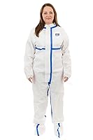ViroGuard 2 overoles resistentes de protección contra riesgos biológicos (blanco) con botas adjuntas y muñeca elástica con trabillas para el pulgar