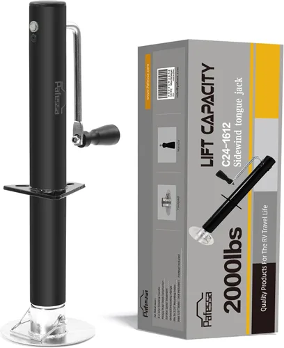 C24-1612: el gato de lengüeta Pafessa Sidewind con marco A para remolque levanta hasta 2000 libras, con un recorrido de 15 pulgadas. Se adapta a agujeros de montaje de 2.25 pulgadas y tiene una almohadilla de 6 pulgadas de diámetro para evitar que se hunda.