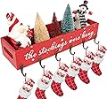 Soporte para calcetines de Navidad para repisa, caja de almacenamiento de madera con 6 ganchos para colgar, decoraciones rústicas de vacaciones para