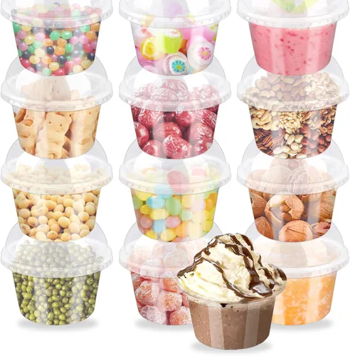 Qyyiguf 50 vasos de plástico transparente de 8 onzas con tapas de cúpula, tazas de cristal PET para parfait, tazas de postre desechables, vasos