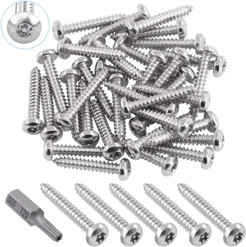 ♛【Lo que obtienes】: los juegos incluyen 50 tornillos de chapa de seguridad Torx #8 x 1 pulgada para uso doméstico y de oficina, así como una broca T20 para tu instalación. ♛【Material de alta calidad】: todos los tornillos están hechos de material de acero inoxidable 304 de alta calidad, es rígido y resistente a la corrosión. Material duradero que garantiza su durabilidad, lo que los hace prácticamente indestructibles y servicio durante mucho tiempo. ♛【Diseño de resistencia a manipulaciones】: los tornillos están diseñados con pasador en la cabeza Torx para una resistencia a manipulaciones. En su mayoría estos tornillos a prueba de manipulaciones se utilizan para disuadir la extracción o manipulación de tornillos no deseados. La extracción de tornillos es difícil sin el destornillador a juego. Son más seguros que los tornillos de cabeza normal. ♛【Fácil de instalar】: los tornillos son de tipo chapa con punta de autoperforación, perforan muy bien en metal ligero, chapa, madera y otras superficies, mejor utilizado con aplicaciones de metal a madera o metal a metal. No necesita agujero pretaladro, la broca es especialmente adecuada para la cabeza del tornillo, no te preocupes por que no haya un destornillador adecuado. ♛【Amplia aplicación】: ideal para tu hogar, oficina e industria para protegerte del robo, el vandalismo, especialmente utilizado para asegurar que los materiales sean manipulados, a menudo puedes ver tornillos de seguridad utilizados en puestos de baño y otros lugares públicos. También se utilizan en áreas de preparación y procesamiento de alimentos.