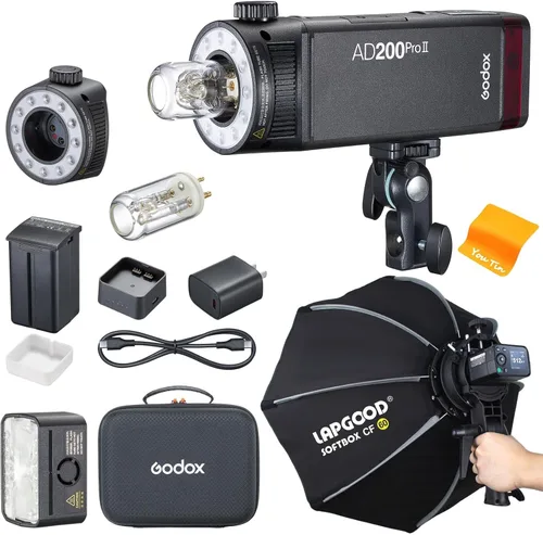 GODOX AD200 PRO II - Luz estroboscópica flash con caja de luz LAPGOOD CF60 de 24 pulgadas, sincronización de un solo toque con X3, iluminación de