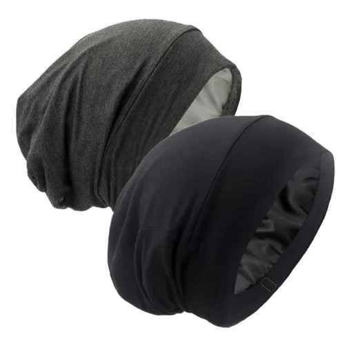 Gorro de dormir con forro de satén, ajustable, no se decolora, con calavera, para proteger el cabello rizado natural, negro y gris oscuro