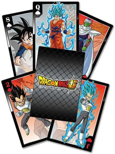 Naipes oficiales de Dragon Ball Super de GREAT EASTERN entertainment Tarjetas súper divertidas con tus héroes dbz: Super Saiyan God Goku, Super Saiyan Vegeta, Vegeta, Goten, & Piccolo, etc. Una cubierta. Baraja estándar de 52 cartas con 2 cartas Joker.