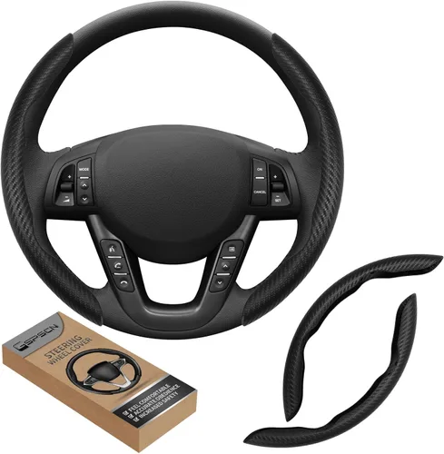 ✔️Experiencia de Conducción Cómoda: Funda para volante de patrón de fibra de carbono, ultra delgada y ligera, te proporciona un excelente agarre mientras conduces. El patrón único de fibra de carbono y la textura masajearán tu palma y aliviarán la fatiga de conducción, te brindarán un gran tacto y sensación. El diseño ergonómico asegura un ajuste perfecto sin que se caiga o arrugue, destacándose de otros envoltorios. Convirtiéndolo en un accesorio esencial para el interior del automóvil para hombres y mujeres. ✔️Material de alta calidad: La funda del volante está hecha de piel sintética de alta calidad, ambiental, suave, sin olor, que cuenta con una notable transpirabilidad que mantiene las palmas frescas y secas para un agarre confiable sin deslizamiento, sin olor, resistente al desgaste, duradera y cómoda, reduce el deslizamiento de la mano mientras también actúa como una barrera contra los rayos UV. ✔️Protección para todo tipo de clima: el protector de volante GSPSCN evita que tu volante se caliente o se enfríe extremadamente. El cuero duradero es resistente en cualquier clima con propiedades antideslizantes que mejoran tu agarre y te brinda un mejor control. Su transpirabilidad hace que tus palmas no suden tanto mientras conduces. Experimenta el diseño profesional que mantiene tus palmas frescas y secas. ✔️Accesorios de volante de ajuste universal: esta funda de volante de fibra de carbono se adapta a la mayoría de camiones, minivans, crossover y SUV, sedanes, etc. Es perfecto para todos los volantes tipo O y D de 14/15/16 pulgadas. Ten en cuenta que el volante debe ser original para garantizar un ajuste preciso. ✔️Instalación rápida: El protector del volante solo necesita ser colocado en su posición en unos pocos segundos, no se necesitan herramientas, rápido y conveniente. Y se puede quitar sin dañar el volante. Ten en cuenta que debes quitar la funda anterior antes de la instalación.