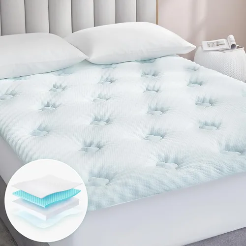 Capa de espuma viscoelástica de apoyo: el cubrecolchón de espuma viscoelástica Hansleep cuenta con una estructura única que combina una capa de espuma viscoelástica con infusión de gel y rellenos alternativos de plumón. Este diseño asegura que la distribución del peso sea uniforme y se alivia la presión de diferentes puntos del cuerpo. Es una excelente adición para un colchón firme. Superficie premium: este cubrecolchón cuenta con una superficie transpirable que absorbe el sudor nocturno. Combinado con el gel refrescante infundido en la espuma viscoelástica, proporciona un ambiente fresco y cómodo para dormir. Diseño de bolsillo profundo: el protector de colchón de bolsillo profundo se puede estirar hasta 21 pulgadas de profundidad, asegurando que se ajuste perfectamente a cualquier colchón y se mantenga en su lugar durante toda la noche. Fácil de instalar y mantener: el diseño de la sábana bajera de esta funda de colchón hace que sea increíblemente fácil de instalar en tu colchón. También es lavable a máquina, lo que significa que se puede limpiar y mantener sin esfuerzo, lo que te proporciona una experiencia sin esfuerzo y sin complicaciones. Instrucciones de cuidado: el cubrecolchón Hansleep viene empacado al vacío y puede parecer más delgado al desembalar. Por favor, permita que dos días recupere su forma y grosor. Se puede lavar a máquina con agua fría en un ciclo suave y secar en secadora a baja temperatura. No se recomienda planchar ni limpiar en seco.