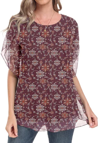 HAOMEILI Blusas de malla de manga 34 con volantes para mujer, blusas holgadas y elásticas