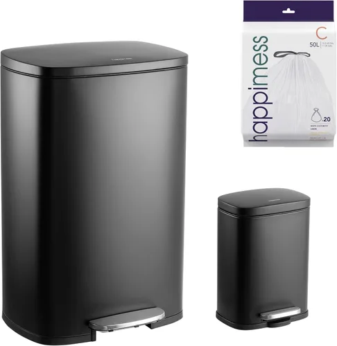 Diseño elegante y práctico: los diseños de los botes de basura happimess se mezclan maravillosamente con tu decoración existente; desecha la basura manos libres con nuestro práctico pedal de paso; el amortiguador integrado baja la tapa silenciosamente y la cierra firmemente para mantener los olores en el interior Duradero y fácil de limpiar: creemos en la función de seguimiento de la forma; hechos de acero de alta calidad, nuestros botes de basura cuentan con un cubo de plástico interior duradero y ligero; el acero inoxidable cepillado es resistente a las manchas y a prueba de huellas dactilares Satisfacción garantizada: cada diseño de happimess se crea con una atención sin concesiones al detalle, utilizando solo componentes de la más alta calidad; con sede en Soho, Nueva York, el diseñador Jonathan y su talentoso equipo crean una decoración asequible para el hogar de alta gama El bote de basura grande puede contener 50 litros o 12.98 galones de basura, pequeño bote de basura con capacidad para 5 litros o 1.3 galones de basura Construcción de acero inoxidable a prueba de óxido