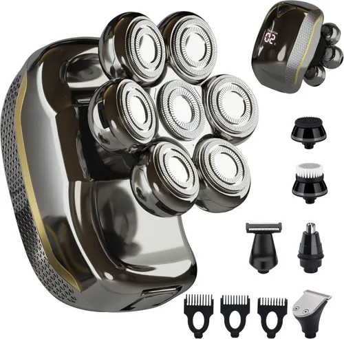 ★ MULTIFUNCTIONAL ★7D electric razor for men is a premium multifunctional shaver to provide the best results for various personal care needs with six detachable accessories. Our rechargeable electric shaving razor for men can work as a beard trimmer, stubble trimmer, ear and nose hair trimmer, even a body or leg shaver for women. ★ LATEST UPGRADED VERSION★With the 7 pivot and double-ring durable and sturdy blades, a greater contact area is provided which allows an efficient and faster shaving experience. Besides, the anti-pinch system, our grooming kit for men maintains stable power operations and prevents hair pinch for a comfortable shaving experience. ★ WATER RESISTANT ★ Electric razor grooming kit has a washable and shower friendly feature with IPX6 water resistance technology which allows it to use for comfortable dry shaving or refreshing wet shaving, with and without shaving cream, gel or foam. Our electric head shavers for men are easy to disassemble and easy to clean which can directly be cleaned under the running water so they will be ready for the next usage. ★SPECIAL FEATURES ★ You will get 90 minutes runtime with 2 hours fully charged shaver. You can see the battery status via LCD display. TYPE-C rechargeable which makes it perfect for home and travel usage. 5 seconds long press will lock the shaver. ★WHAT YOU GET ★ 6 in 1 bald head shaver for men included all you need for the best shaving experience.A great gift for husband, boyfriend, dad and others! Our service team will provide the best solution in 24h for you. Let’s make you shine with our premium electric shaver!