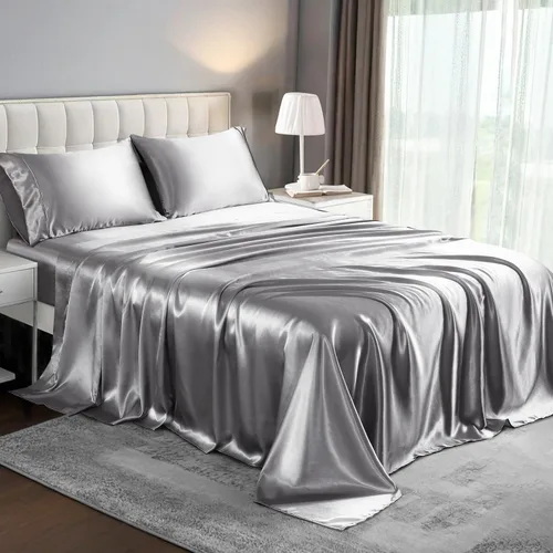 Juego de sábanas de seda con acabado satinado refrescante para piel y cabello transpirable, disfruta del lujo de hotel de 5 estrellas cada noche, mejora tu sueño con nuestro juego de sábanas de satén de alta calidad, meticulosamente diseñado para aquellos que exigen elegancia y funcionalidad. Las propiedades naturales que regulan la temperatura te mantienen fresco en verano. ¿Por qué elegir nuestra ropa de cama de seda? ✅ Cuidado de la piel y el cabello: la seda satinada de grado 6A reduce la fricción, evitando las arrugas de la cabeza de la cama y la mañana mientras bloquea la humedad. Comodidad transpirable: la sábana de satén promueve el flujo de aire, absorbe el sudor 3 veces más rápido que el algodón. ✅ Durabilidad garantizada: garantiza una suavidad duradera sin enganches
