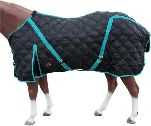 Protege a tu caballo con estilo y comodidad con nuestras mantas de alta calidad. Las mantas Hilason están diseñadas para ofrecer un rendimiento inigualable. Fabricadas con material de alta calidad, estas mantas están probadas en laboratorio para soportar la presión extrema del aire y el agua, superando incluso a las marcas caras de primer nivel. Son el mejor escudo contra el clima frío y húmedo, proporcionando la protección perfecta para tu compañero equino. Estas mantas son más que un equipo resistente a la intemperie; están meticulosamente elaboradas con materiales de alta calidad procedentes de todo el mundo para cumplir con estrictas especificaciones orientadas al cliente. Ya sea lluvia, nieve o vientos fuertes, tu caballo se mantendrá seco, acogedor y cómodo. Prepara a tu caballo para las noches más frías con una manta diseñada para un aislamiento y comodidad superiores. Di adiós a los escalofríos y hola al calor. Para la mayoría de las mantas fabricamos tamaños 78, 80, 81, 82 y 84. Para otros tamaños (64 a 86 pulgadas), se recomienda el tamaño más cercano, ya que nuestras mantas incluyen una sección expandible cerca de las patas delanteras para un ajuste a medida. Un caballo que necesite una manta de 76 pulgadas debe seleccionar la talla 75. Un caballo que requiera una manta de 70 pulgadas debe optar por la talla 69. Equipa a tu caballo con la mejor protección contra los elementos, porque su comodidad y bienestar importan.