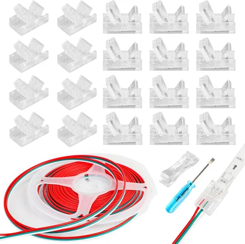 HOMELYLIFE Paquete de 20 conectores de tira LED de 3 pines sin soldadura con cable de extensión de 16.4 pies, 3 conductores para tiras de luces LED