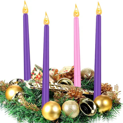 • Seguras de usar: hechas de luces LED de silicona flexible y plástico, estas velas de té LED son fiables y resistentes, sin riesgo de rotura de vidrio o fugas, no se sobrecalientan, y se pueden aplicar con tu confianza Cantidad y dimensión: un paquete incluye 4 luces de Adviento en diferentes colores, 3 moradas y 1 rosa, gran cantidad y color que pueden satisfacer tus necesidades de decoración, cada vela LED mide aproximadamente 10.83 pulgadas de altura y 0.79 pulgadas de base Funciona con pilas: el juego de velas de Adviento funciona con 2 pilas AAA (no incluidas), puede durar más tiempo, fácil de usar, solo necesitas girar la parte inferior de la vela para encender o apagar