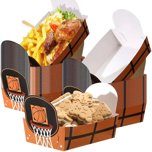 Suministros de fiesta de baloncesto: el paquete viene con 60 paquetes de bandejas de comida de baloncesto, cantidad suficiente para satisfacer las necesidades de servicio de comida de tu cocina o fiesta de baloncesto, también puedes compartirlas con tus compañeros íntimos o vecinos Tamaño adecuado: estas bandejas de papel de pelota de baloncesto para alimentos son muy adecuadas para guardar papas fritas, mariscos, perros calientes, palitos de queso, etc. Las bandejas para servir miden aproximadamente 5.12 x 3.35 x 1.57 pulgadas, son fáciles de almacenar sin ocupar mucho espacio Come con elegancia: hecha de material de cartón de papel grueso, esta bandeja de baloncesto para servir concesión es segura y resistente, y necesitas montar; la forma de barco hace que la comida sea a prueba de fugas, por lo que puedes disfrutar de aperitivos sin preocuparte por derrames o manchas de grasa; diseño desechable significa que no necesitas pasar tiempo limpiando, ahorrando tiempo y energía Diseño de recuerdos de baloncesto: estos botes de comida de papel están impresos con patrones de baloncesto, y combinados con colores brillantes, vivos y delicados, el diseño novedoso será aficionado a la mayoría de los adolescentes y amantes de los deportes, dejando una profunda impresión en los invitados Suministros de fiesta de cumpleaños con temática de baloncesto: la bandeja de comida desechable de cartón es ideal para fiestas temáticas de baloncesto, fiestas temáticas deportivas, fiestas de cumpleaños, carnavales, festivales, cines, eventos en interiores o exteriores, barbacoa, picnic y mucho más
