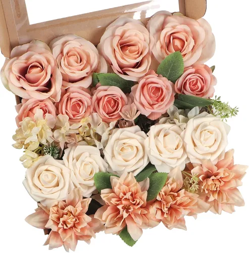 【Caja combinada de flores artificiales de color rosa claro】Un paquete combinado de diferentes tipos de flores y colores como tema. Listo para crear tus ramos, centros de mesa o cualquier otra decoración de flores en tu boda, fiesta, baby shower o hogar. Flores multiusos para decoración: estas flores para decoración son la base perfecta para centros de mesa y arreglos. Las flores artificiales de rosas rosas a granel encajan perfectamente en bodas, fiestas, novias o baby shower, cumpleaños, San Valentín, iglesia, bautizo, decoración del hogar. Estiliza fácilmente las flores artificiales en ramo, jarrón, coronas, decoración de pasteles, boutonnieres, arco, fondo de pared. Calidad prémium y fácil de mantener: las rosas artificiales a granel están hechas de seda y espuma. Alcanza ese estilo clásico de granja o crea ramos y centros de mesa con nuestras flores artificiales. El ramo de flores artificiales de rosas florecerá para siempre sin necesidad de mantenimiento. Ideal para arreglos florales: las flores de seda para manualidades vienen con tallos flexibles con alambre, que es fácil de instalar, doblar o recortar. Las flores artificiales se pueden apretar o deformar durante el tránsito, por favor, recuperarlas con plancha de vapor. Nota: estas flores de seda y espuma para decoración están hechas a mano. Ten en cuenta que el tamaño puede variar ligeramente y puede haber una ligera diferencia de color entre los diferentes lotes de tinte.