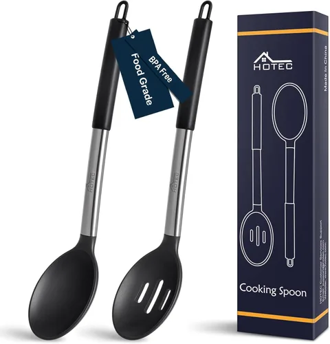 Pregunta sugerida sobre HOTEC Cuchara de cocina grande de silicona resistente al calor de 446 °F, cucharas ranuradas sólidas sin BPA, utensilios de cocina antiadherentes ¿Qué incluye exactamente este set?