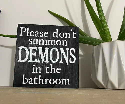 | Hay texto preimpreso | Por favor, no convoques demonios en el baño |