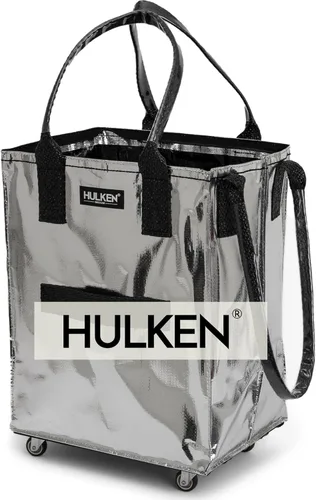 HULKEN (Mediano, Plateado) Bolsa de Comestibles Reutilizable con Ruedas, Carrito de Compras, Bolsa Rodante, Cierre de Cremallera, Ligera, Soporta