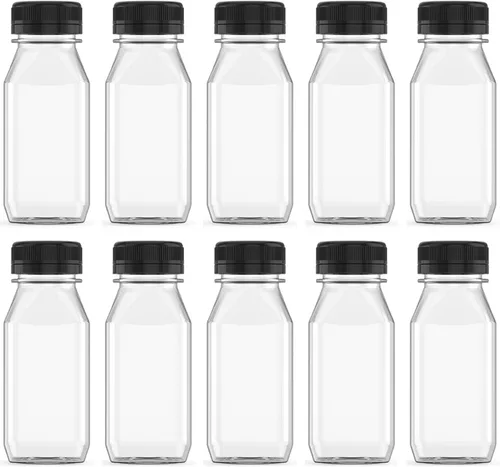Contenido del paquete: recibirás 10 botellas de jugo de plástico vacías de 4 onzas y 10 tapas resistentes a las grietas, recipientes para uso doméstico o de cocina para satisfacer tus diversas necesidades. Son de 4.1 x 1.7 x 1.7 pulgadas de tamaño, diseño de botella pequeña, se puede llevar contigo. Botellas de plástico transparente Material: Por favor, no utilice para horno microondas o lavavajillas. Nuestros envases de plástico para jugo están hechos de plástico de grado alimenticio de alta calidad, libre de BPA, que es respetuoso con el medio ambiente y seguro. Rendimiento de Sellado y Seguridad: Cada envase de leche a granel está con tapas a prueba de fugas. Esto mantendrá el frasco sellado para evitar derrames, preservando todo su sabor fresco. Son ideales para picnics, deportes, restaurantes, tiendas de jugos y gimnasios. Amplia gama de aplicaciones: Estas botellas de jugo de frutas de plástico con cubiertas son muy adecuadas para almacenar jugo de frutas, leche, batido, café, jugo de verduras, jugo de frutas, limonada, condimento, jarabe, etc. GARANTÍA DE SATISFACCIÓN: Cada producto es cuidadosamente seleccionado y comprobado.
