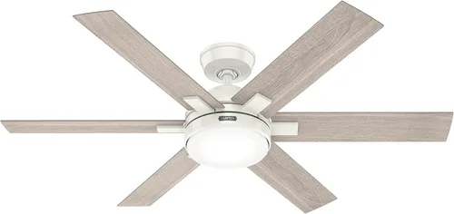 Instalación fácil y rápida: el ventilador de techo Georgetown cuenta con tecnología HunterExpress, con un cuerpo premontado, cableado plug-and-play y cuchillas a presión sin herramientas, lo que hace que la configuración sea rápida y sin esfuerzo para los entusiastas del bricolaje. Flujo de aire de alta velocidad: construido con garantía SureSpeed, este ventilador de techo ofrece una velocidad de aire más de un 33% más alta que los principales competidores mientras garantiza un rendimiento silencioso y sin tambaleos. Salida de luz LED brillante: el ventilador de techo con luces LED proporciona luz blanca brillante, mejorando la iluminación mientras que es eficiente en energía y duradero. Control remoto para un fácil funcionamiento: ajusta la velocidad del ventilador y atenúa la luz cómodamente desde cualquier lugar de la habitación con el control remoto incluido. Cuchillas modernas a presión: no se requieren herramientas para la instalación de la hoja, lo que hace que el montaje sea rápido y sin complicaciones.