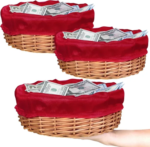 Lo que recibirás: nuestras canastas redondas de alimentos vienen en un juego de 3, ricas y versátiles, se pueden aplicar no solo para ofrendas de la iglesia, sino también para mostrar varios artículos como llaves, cambio, velas, pan y dulces, adecuadas para satisfacer tus necesidades diarias Tamaño adecuado para tus necesidades: estos cuencos de mimbre para mesa son del tamaño ideal para tus necesidades, miden aproximadamente 9.1 x 3.2 pulgadas / 9.1 x 3.1 in; están diseñados para acomodar ofertas de una gran congregación sin problemas, asegurando que los participantes de la iglesia puedan asistir y adaptarse cómodamente; se pueden aplicar como un centro de mesa en la parte superior de una mesa de iglesia y también pueden mantener los artículos ordenados y organizados con este tamaño adecuado Diseño y material considerables: la cesta de frutas de mimbre proporciona los bordes reforzados y el diseño de superficie lisa que garantizan tu seguridad, mientras que añade un atractivo visual elegante; cada cesta incluye un forro rojo extraíble que es fácil de limpiar y combina bien con la estética de la iglesia; nuestra cesta está hecha de mimbre natural resistente con método tradicional tejido a mano, asegurando longevidad y robustez incluso con un uso regular Versátiles y estéticamente agradables: estas canastas para iglesias son multifuncionales y se pueden aplicar fácilmente en varios entornos, como restaurantes, cocinas, picnics, fiestas e incluso como decoración del hogar; su atractivo elegante significa que se mezclan perfectamente en muchos lugares, desde una cocina ocupada hasta una iglesia serena; estas canastas sirven como artículos de decoración llamativos, mejorando el ambiente de muchos espacios que ocupan Un regalo cuidadoso con varios usos: nuestras cestas de mimbre para servir no solo son de calidad, sino que también cuentan con múltiples usos, lo que las convierte en un regalo maravilloso para muchas ocasiones; ya sea Navidad, bodas, cumpleaños o celebraciones de trabajo, este producto se puede aplicar como un centro de mesa o un práctico cuenco de almacenamiento; muestra tu cuidado y aprecio con un regalo que es hermoso, funcional y versátil