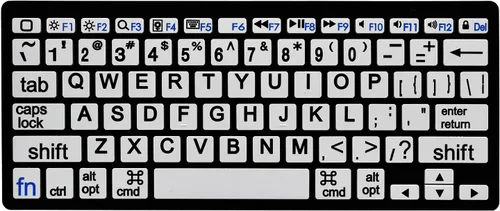 Impresión grande: el teclado de impresión grande de alto contraste ofrece una mayor visibilidad con teclas blancas fáciles de ver y letras negras nítidas de impresión grande. Estas teclas de alto contraste realmente pueden ayudar a aquellos que tienen problemas para ver los teclados. Perfecto para ancianos, personas con discapacidad visual, escuelas, departamentos de necesidades especiales y bibliotecas, así como empresas. 【Super chip Bluetooth】Chip Bluetooth de importación de Estados Unidos, hace que la conexión sea estable y rápida. Distancia de funcionamiento de hasta 32.8 ft. Tecla de tijera silenciosa: la estructura de tijera hace que la escritura sea más silenciosa. Además, utilizamos soporte de metal en el interior que hace que la tijera sea más duradera. Batería de larga duración: el teclado Bluetooth utiliza un diseño de ahorro de energía y modo de suspensión automático para permitir hasta 6 meses entre cambios de batería. (2 pilas AAA, no incluidas) Amplia compatibilidad: compatible con iPads, iPhones y tabletas, portátiles y Macbooks habilitados para Bluetooth.
