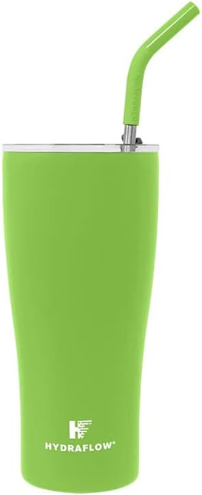 HYDRAFLOW Capri - Vaso con pajita, vaso de triple pared aislado al vacío, vaso aislado para batidos de acero inoxidable (30 onzas, verde flash)