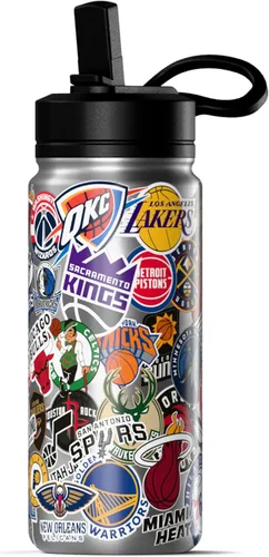 DISEÑO OFICIAL CON LICENCIA DE LA NBA – Muestra tu amor por la NBA con esta botella de agua aislada con licencia oficial de la NBA de 20 oz que presenta los logotipos de los 30 equipos de la NBA en un diseño vibrante tipo pegatina. Perfecto para cualquier fanático del baloncesto Aislamiento para un máximo rendimiento: mantén tus bebidas heladas hasta 24 horas o calientes hasta 12 horas con nuestro aislamiento al vacío de doble pared, asegurando la frescura sin importar el clima del día del juego. Duradera y a prueba de fugas: hecha de acero inoxidable de alta calidad, esta botella de agua está diseñada para soportar el uso diario. La tapa con popote incluido y la manija hacen que beber y transportar sea sin esfuerzo mientras se mantiene a prueba de fugas. Funcionalidad todo en uno: con su gran capacidad de 20 onzas, esta botella es perfecta para mantenerse hidratado en el gimnasio, la escuela, la oficina o la cancha. El diseño con estampado de calcomanías añade un toque divertido y personalizado a tu rutina de hidratación. Ideal para fanáticos y coleccionistas – Un imprescindible para los entusiastas de la NBA, esta botella única es ideal como regalo para cumpleaños, festividades o celebraciones de partidos. ¡Mantente hidratado con estilo mientras representas a tus equipos favoritos!
