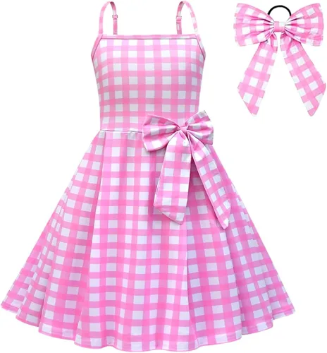 HZZNOBL Vestido a cuadros rosa para niñas, disfraces de cosplay con accesorios de 4 a 14 años