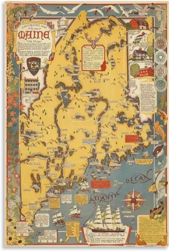 ¿Para qué sirve Impresión artística grande del mapa del estado de Maine, Estados Unidos, alrededor de 1938, lienzo para pared, póster de sala de estar, cuadros e?