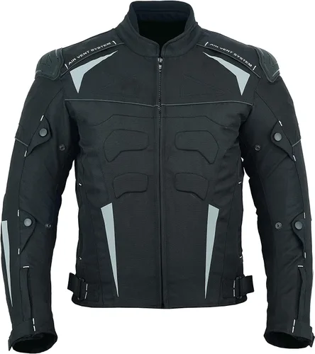 Hecho de material de cordura 600D de calidad. La cremallera de ventilación de aire se fija para la temporada de verano. 3 forros (un forro de malla fijo, uno para impermeabilidad y otro térmico desmontable con cremallera de ventilación de aire se fijan para la temporada de verano. 3 forros (un forro de malla fijo, uno para impermeabilidad y un forro térmico desmontable para la temporada de invierno. 2 protectores moldeados externos fijos y 5 piezas desmontables aprobados por la CE. Protectores adicionales integrados en la parte delantera y trasera de la chaqueta para mayor seguridad. Tiras reflectoras impresas en la parte delantera, trasera y en las mangas. Protectores adicionales integrados en la parte delantera y trasera de la chaqueta para mayor seguridad. Tiras reflectoras impresas en la parte delantera, trasera y en las mangas. Talla S para pecho 38 pulgadas, M para pecho 40 pulgadas, L para pecho 42 pulgadas, XL para pecho 44 pulgadas, XXL para pecho 46 pulgadas, 3XL para pecho 48 pulgadas, 4XL para 50 pulgadas y 5XL para pecho 52 pulgadas.