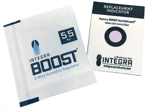 Control de humedad de 2 vías: el control de humedad Integra Boost se adapta a su entorno, ya sea liberando o absorbiendo la humedad según sea necesario. Resistente a derrames y roturas: paquetes de control de humedad no tóxicos de 2 vías sin sal (los paquetes están hechos con tinta apta para alimentos). Control de humedad: colócalo donde más necesites controlar la humedad, ideal para artículos de despensa, almacenamiento de cigarros, etc. INDICADOR INCLUIDO – Cada paquete incluye una tarjeta de indicador de humedad – cuando el punto de la tarjeta se vuelve azul es hora de reemplazar su paquete Integra Boost. También incluye lápiz Tru Inertia. Tecnología de control de 2 vías: utilizando tecnología de control de 2 vías, los paquetes Integra Boost mantienen la humedad relativa cerca del 62% en un entorno controlado y contenido.