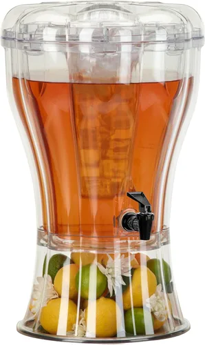 Gran almacenamiento para grandes eventos: tiene capacidad para hasta 3.5 galones, por lo que es ideal para bodas, picnics y grandes reuniones sin recargas constantes. MANTÉN LAS BEBIDAS FRÍAS SIN DILUCIÓN - El cono de hielo removible enfría las bebidas de manera efectiva, asegurando que los sabores permanezcan sin diluir y refrescantes. Construido para durar: hecho de plástico Tritan libre de BPA, que ofrece la claridad del vidrio con la fuerza para resistir roturas y manchas. ESPIGA DE VERTIDO FÁCIL PARA SIRVIR SIN DESORDEN - Equipado con una espiga de primera calidad con acabado en cromo que proporciona una dispensación suave y sin goteos cada vez. Etiqueta de identificación de pizarra de tiza lavable: incluye un cartel reutilizable para etiquetar tus bebidas, añadiendo un toque personalizado a tu evento.
