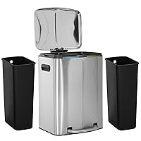 BLKMTY Bote de basura de 10 galones de 45 litros, doble basura, de acero inoxidable, con tapa, cubo interior, contenedor de basura para la oficina